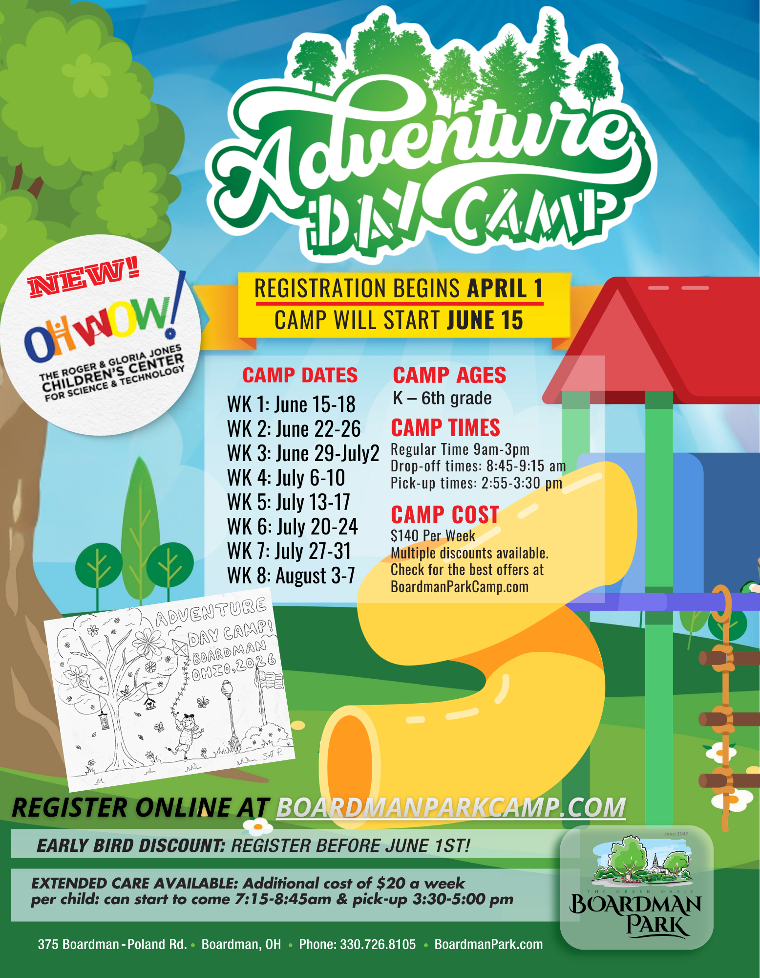 Adventure Day Camp is different than your “normal” summer day camp! Each day the campers attend 4 different subjects and participate in a whole-group activity. Groups are divided up by grade and curriculum is designed to be age appropriate, educational, and fun! Our goal is to blend summer camp fun with nature and education. Most of our time is spent outdoors!! Kids stay active by participating in daily scheduled educational programs focusing on... Arts & Crafts, Creative Communications, STEM and Sports